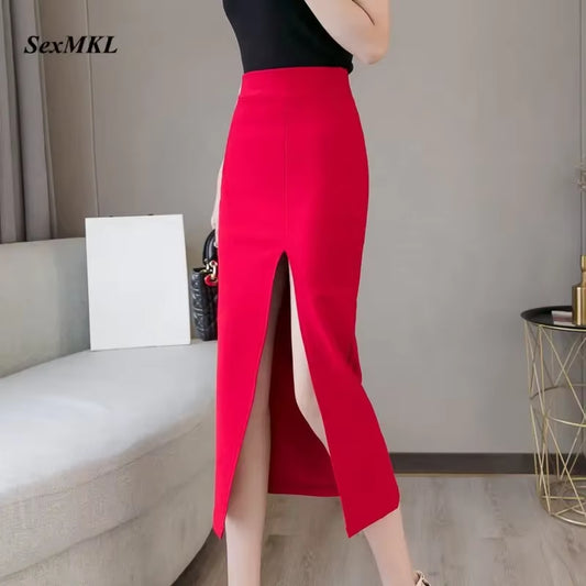 Oversized Faldas Mujer Moda 2024 Fashion Long Skirts Womens High Waist Red Korean Skirt Office Women Sexy Black Skirt