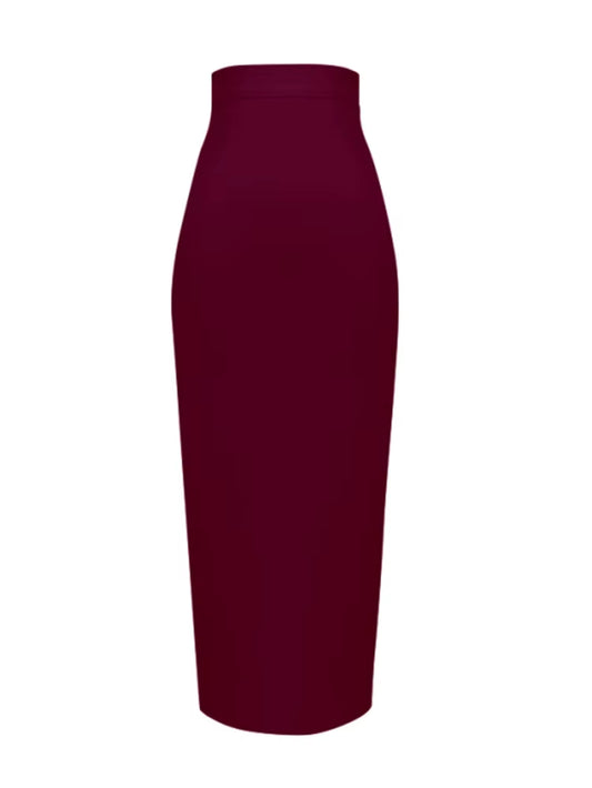 2024 Women PU Leather Midi Skirt Autumn Winter Ladies Package Hip Front or Back Slit Pencil Skirt